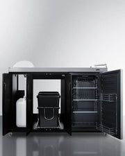 Outdoor Kitchenette 58" Refrigerator, Sink or Covered ice Bin, Slide-Out Trash Can