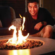 Bring ambiance and coziness to your favorite outdoor spaces with the Nexus 36-Inch Patioflame Table. These flame tables are all unique, hand-crafted and painted to recreate the look of concrete with all of its rustic variance. No one Nexus Patioflame Table is the same, but their rustic-rough look will pair well on stone patios and wooden decks alike. Lava rock media hides the burner to create magical flame patterns that run the length of the table. This unit is automatically propane fueled but can also be converted to natural gas with the included conversion kit. This Nexus Round Patioflame Table features a 3-year warranty, the best in the industry. Extend your outdoor season, with this beautiful Patioflame Table to provide the light and warmth you crave.