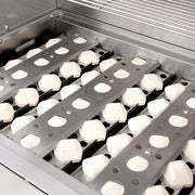 - Captured Briquette Trays - Unique ceramic briquettes sit above the burner to provide radiant heat and eliminate hot/cold zones across the 560in² cooking surface