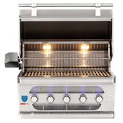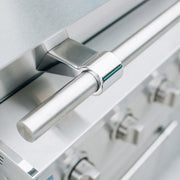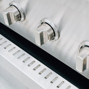 The 36-inch Muscle also features a unique Flame Thrower Ignition that shoots a burst of flame to ignite the main burners and is much more reliable than traditional spark ignition systems. The double lined, spring assisted hood keeps hot air in to ensure a consistent grilling environment complete with a built in 3-inch temperature gauge and interior halogen lighting with LED front panel lighting. Available for both propane and natural gas, this built in grill ensures a complete outdoor kitchen.