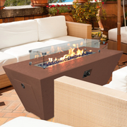The Olympus Fire-Table collection is constructed from GFRC (Glass Fiber Reinforced Concreted) with color dyed-through in through & molded off our proprietary designs. Our fire-tables are designed to complete your outdoor entertaining experience featuring angled side, over 10” of tabletop space for plates & beverage glasses, and ambiance flame effect for adding to the mood or taking the chill off a cool night. The rectangular table features a 36” linear drop-in burner & the Square and Round feature a 19” drop-in pan with 12” burner. All tables are available in Natural Gas or Liquid Propane, match lit or Hot Surface Electronic Ignition & 5 stunning unique colors. For the media add one of seven unique ½” Reflective glass colors, Lava Rock, Tumbled Lava Stones, Arizona Weathered Oak or Western Driftwood fire pit logs.