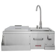Blaze BLZ-30CKT-SNK Beverage Center provides a high quality outdoor kitchen component to complete your ultimate outdoor BBQ paradise. This unit features a 304 stainless steel construction with smooth welded joints for a blend of style and durability that will stand up to the elements in any climate. a hot and cold faucet, insulated ice bin, and front bottle storage offer a full-featured design to help you get the most out of your outdoor kitchen. Additionally, a soap dispenser, removable cutting board, towel rack, bottle opener, and removable 3-part condiment tray offer even more convenience. The entire line of Blaze outdoor kitchen equipment features the same polished stainless construction for a matching stylized look to transport your kitchen outdoors.