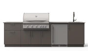 Topping it all off is the Keon Premium Dekton Countertop, a durable, non-porous surface that offers the elegance of natural stone without imperfections. Its light gray hue and matte texture complement any outdoor space while providing an easy-to-clean prep and staging area. Designed for durability, the countertop resists stains, scratches, and fading, making it a practical and stylish choice for your outdoor kitchen.