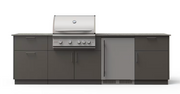 The Urban Bonfire Stainless Steel Cabinetry provides functional and durable storage options. Its marine-grade aluminum construction resists the elements, while the Gunmetal NACRAE finish enhances its style and scratch resistance. Storage features include two top drawers for utensils and tools, a pull-out trash/recycling drawer with bins, and an enclosed cabinet for easy access to your grilling essentials. This thoughtful storage design keeps your outdoor kitchen organized and clutter-free.