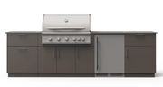 Elevate your outdoor cooking game with the Blaze Morning Glow Outdoor Kitchen Island. Designed with convenience and performance in mind, this luxury island combines Urban Bonfire’s premium cabinetry with Blaze’s top-rated appliances to create the ultimate outdoor kitchen experience. Its modular design features marine-grade aluminum cabinetry with a Gunmetal NACRAE™ powder-coated finish, ensuring durability and elegance for years to come. The included Keon Premium Dekton countertop delivers a refined aesthetic and practical functionality, with its light gray tone and matte texture blending seamlessly with any outdoor space.