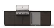 The Urban Bonfire Stainless Steel Cabinetry provides functional and durable storage options. Its marine-grade aluminum construction resists the elements, while the Architectural Bronze NACRAE™ finish enhances its style and scratch resistance. Storage features include two top drawers for utensils and tools, a pull-out trash/recycling drawer with bins, and an enclosed cabinet for easy access to your grilling essentials. This thoughtful storage design keeps your outdoor kitchen organized and clutter-free.