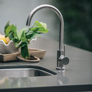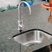 Summerset SSNK-19U Under Mount Sink and Faucet provides a premium sink and faucet option for your outdoor kitchen. Bring the convenience of your indoor kitchen to your backyard with this 304 stainless steel unit built with durability in mind. With its gooseneck faucet and under mount design, this sink offers a simple contemporary look to match nearly any decor--it also accommodates larger pots, pans, and dishes with ease. A single handle allows full control of both hot and cold water for simplicity and ease of use. As an added bonus, this sink includes a stopper plug for use as needed. Upgrade your outdoor kitchen with help from Summerset.