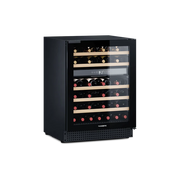A 24-inch wine cooler, dual-zone, freestanding, or built-in, 46 bottles.