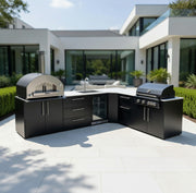 Outdoor Kitchen Elysia L Shape with Gas Barbecue, Pizza Oven, Fridge