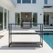 Our Console provides year-round, multifunctional utility, thanks to its sturdy stainless steel frame and aluminum shelves. Use as a serving console and to store extra glassware during outdoor parties or to display photos, greenery and books when used indoors. The open design also makes it useful as an outdoor log rack, allowing ample airflow so wood can naturally season.