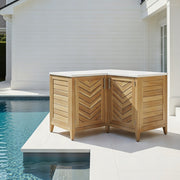 Celebrate in style with our Outdoor Kitchen Collection, crafted of natural, high-quality teak and stainless steel. Each piece is designed to be used outside and yet is stylish enough to be used inside as well. The modular Cabinets have natural teak bases with Bianco Athena white marble tops and can be arranged in a variety of configurations. Use to store cushions, throws, garden tools, pool accessories or serveware.