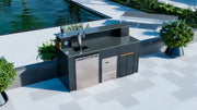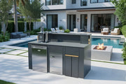 Crafted with a sleek Cobra granite countertop, a corrosion-resistant powder-coated aluminium frame, and elegant thermowood details, this bar unit is both striking and built to last. Finished with two designer bar stools, it’s a standout feature—whether used as a standalone bar or integrated into a complete outdoor kitchen setup.