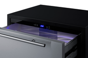 Both drawers feature LED lighting in a striking blue finish for elegant illumination. Frost-free operation minimizes maintenance and internal fans help to maintain an evenly cooled interior. Additional features include open drawer alarms, a child lock to prevent changes to the controls, an eco mode setting, and a 96 hour sabbath mode to disable certain features for periods of observance.