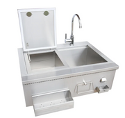 Simply drop in your 15x15 sink and 15x15 ice bin and let them drain to the 30" Farmhouse sink.