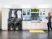 Our pre-configured Laundry Room Sets arrive fully assembled, making it easy for you to create a stylish, functional space you'll love. The strong frames are built for durable support, and our thick 19mm doors are constructed with four layers of lacquer over an MDF core for a smooth, beautiful paint finish. Soft-close metal drawer slides and hinges add smooth functionality, while the modern stainless steel sink with deep basin and contemporary pull-down faucet combine for a premium experience you'll look forward to using. Available in classic White with your choice of sleek, stylish hardware. Cabinet organization accessories sold separately.