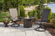 - Chat Height Base - 23" tall base features a powder coated aluminum frame with a premium finish and stores standard 20 lb. propane tank; Base features 21.25" diameter