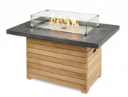 Embrace the elegance and durability of Grade-A teak wood and Everblend concrete with the Darien Gas Fire Pit Table with Everblend Top. An Everblend concrete top offers variation, texture, and durability for a unique and custom design to the table. Stone Grey Everblend concrete top and Myanmar Teak base (Grade A Teak) and 12" x 24” Crystal Fire Plus Stainless Steel Gas Burner. Access door for 20 lb. LP tank. Grey glass burner cover included.