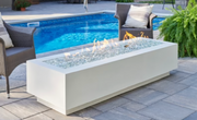 The White Cove 72" linear gas fire pit table is the perfect addition to any contemporary outdoor space. The natural appearance of the White Supercast™ concrete lets the focus be on the stunning Crystal Fire® Plus burner. The organic nature of the concrete is unique to each fire pit. Color variations and casual pitting are common attributes to the fire pit.