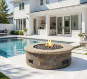 Build your own gas fire pit with the all-in-one Bronson Block Round Gas Fire Pit Kit. Its traditional brick-paver styling delivers the classic look of a backyard bonfire, paired with the modern convenience and clean operation of gas. Choose between round or square options—both are designed as straightforward DIY projects. For a more contemporary finish, choose with or without concrete top pieces are available in Charcoal Grey or Limestone Tan, completing the round fire pit design with a refined, modern edge.