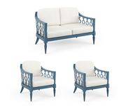 The quatrefoil motif recurring throughout our Avery 3-pc. Loveseat Set puts a contemporary twist on the age-old iron gates of Europe. Expertly crafted of cast aluminum with hand-filed welds, powdercoated finish and weather-defying solution-dyed acrylic cushions, this set is built to stand the test of time and mix well with pieces from our other collections.