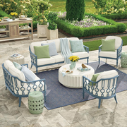 - All-weather cushions have a high-resiliency foam core wrapped in plush polyester