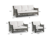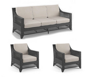 A striking blend of open and closed weaves makes our Graham Seating Collection one of a kind. All-weather wicker is woven by hand over a corrosion-resistant powder coated aluminum frame that is designed to withstand season after season of harsh weather. Included cushions are upholstered in 100% solution-dyed acrylic fabric.