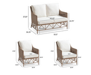 Inspired by classic rattan furniture, our cozy Haven Loveseat Set exudes vintage coastal cool. All-weather wicker is handwoven over a powdercoated aluminum frame. Included cushions are upholstered in 100% solution-dyed acrylic fabric.