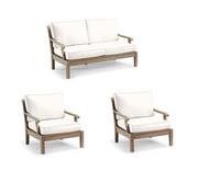 A grand scale and teak hardwoods make our Cassara Seating Collection the perfect destination at the end of the day. Each piece is handcrafted of high-quality teak that has been kiln dried to eliminate expansion and shrinkage. Stainless steel hardware is fully concealed, so nothing interrupts the clean, smooth lines. Included cushions are covered in the industry’s best all-weather fabrics.