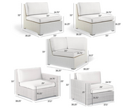 - Palermo 5-pc. Modular Set in White Finish (67717_WHI): Includes left-facing and right-facing armchairs, corner chair, and two center chairs with cushions. Note: Set only available as listed.