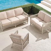 Our Hampton Seating Collection has a relaxed, southern attitude, intricately handwoven in weathered ivory resin wicker. Unwind in a choice of seats, all softened with thick, all-weather seat and back cushions. Smoothly woven tables are the perfect finish.