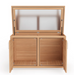 Easy Access: Hydraulic springs make lifting the heavy lid effortless, while soft-close front doors open wide for full interior access.