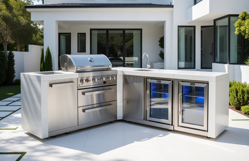View full detailsMont Alpi 805 Deluxe BBQ Grill Island with 90 Degree Corner & Kegerator - MAi805-D90KEG