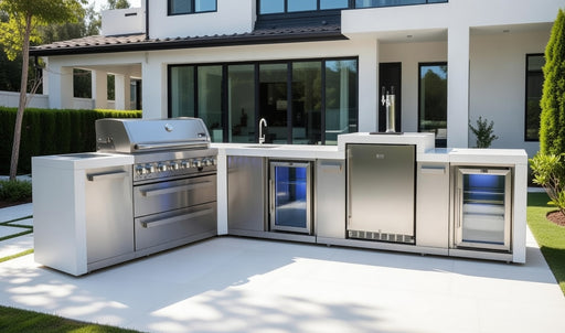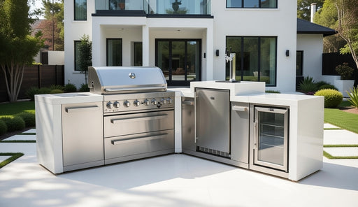 View full detailsMont Alpi 805 BBQ Grill Island with 90 Degree Corner & Kegerator - MAi805-90KEG