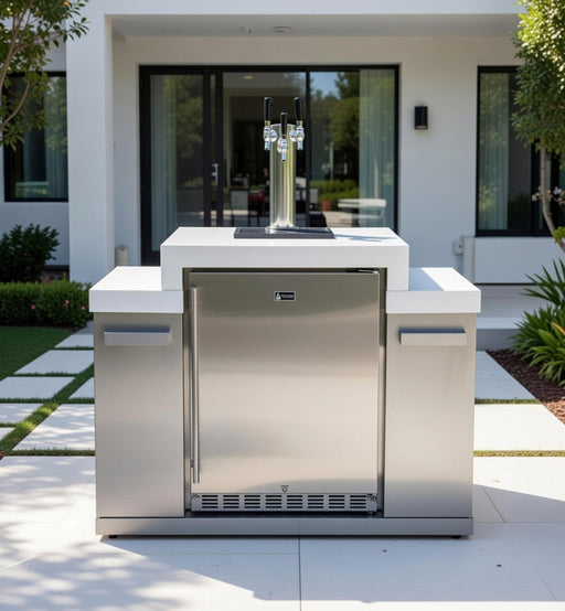 Mont Alpi Keg Center with outdoor rated cooler can hold 3 slim kegs. The unit has 3 taps and beautiful white granite surfaces. The Mont Alpi Keg Ce...