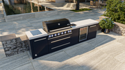 The game changer of this grill is the beverage center module, featuring an outdoor-rated refrigerator, sink, and faucet. Keep your drinks and ingredients cold and at hand, and easily prep your meals with the convenient sink and faucet.