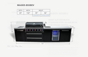 Elevate your outdoor cooking experience with the Mont Alpi 805 Black Stainless Steel Island with Beverage Center. This grill is the perfect combination of style and durability, with six standard burners, an infrared side burner, and an infrared rear burner complete with a heavy-duty rotisserie kit for the ultimate cooking experience. The LED knob lights and bright internal cooking lights offer precision control, while the counter granite top adds convenience and style.