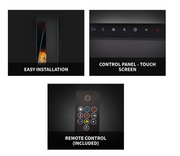 - Convenient remote control operates flame height, heater and can operate thermostatically