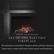 - Realistic log set and enhancing ember bed elevate the ambiance