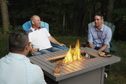 A stylish linear design sets the Napoleon Hamptons Rectangular Patioflame® Table apart from the rest. The stylish linear design with a contemporary look to suit any décor. Gather round and relax in front of the beautiful dancing flames. Safe and fuel efficient, the Hamptons Rectangular Patioflame® Table features a thermocouple valve that cuts the gas when flame is interrupted, meaning that if a gust blows the flame out, or you forget to shut the gas when you’re done, no gas will be wasted. The beautifully constructed, durable, aluminum surround conveniently hides a gas tank (propane models). Never worry about the weather, drainage holes in the burner pan allow the rain to drain away, and the optional windscreen will protect the flames from the wind. Set your drinks down, converse in comfort and enjoy your outdoor living space. Easily convert your Hamptons Rectangular Patioflame® Table into a fully functioning table with the burner lid (included).