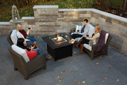 Gather around with your family and friends beside the warm radiant heat of Napoleon’s Kensington Rectangle Patioflame® table. The Kensington is constructed in rust-resistant aluminum for lightweight mobility and weather resistance. The rustic bronze finish and ornate details provide a feeling of imperial luxury in your backyard. Each model features a topaz glass ember bed for beautiful flame reflections and other colored glass kits are available for further customization. A single panel door provides easy access to a propane tank and a natural gas conversion kit is included. The Kensington also comes with a matching burner cover to increase your entertaining area when not burning.