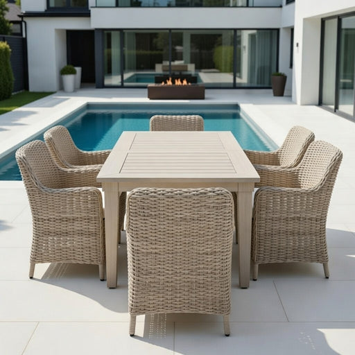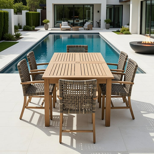 With a breathable open weave and solid teak frames, our Dining Collection is the perfect fit for arid and coastal climates alike. Generously propo...