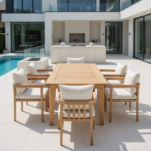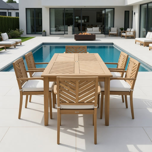 View full detailsRectangular Dining Set with Cushions in Natural Teak