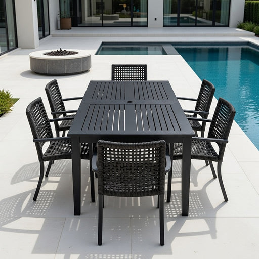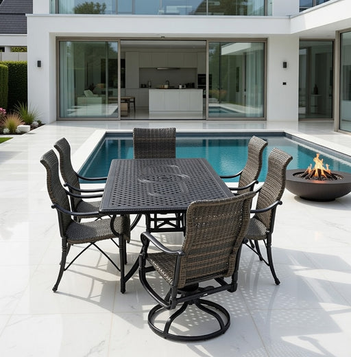 7-piece Rectangular Dining Set in in Black Aluminum & Black Walnut Wicker (173465): Includes Classic Aluminum Extendable Dining Table,...