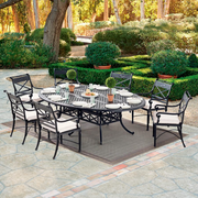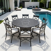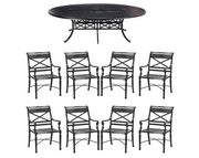 - 9-pc. Oval Dining Set in Onyx Finish (68810_ONX): Includes oval table in cast-aluminum and eight arm chairs. Set only available as listed.