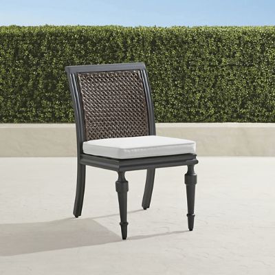 Inspired by classic West Indies furniture, St. Lucia infuses your outdoor space with island-time ease. All-weather wicker panels are combined with a durable powder coated aluminum frame accented with molded trim and fluted feet. Included cushions are upholstered in 100% solution-dyed acrylic fabric. Dining table features a slatted aluminum top. Imported.