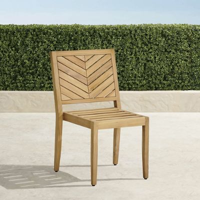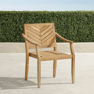 Based on or popular Westport Outdoor Kitchen Collection, each outdoor dining piece is crafted natural, high-quality teak. They feature a chevron design on the seats and seat backs for a cohesive look. The armchairs and side chairs also stack for convenient, space-saving storage when not in use.