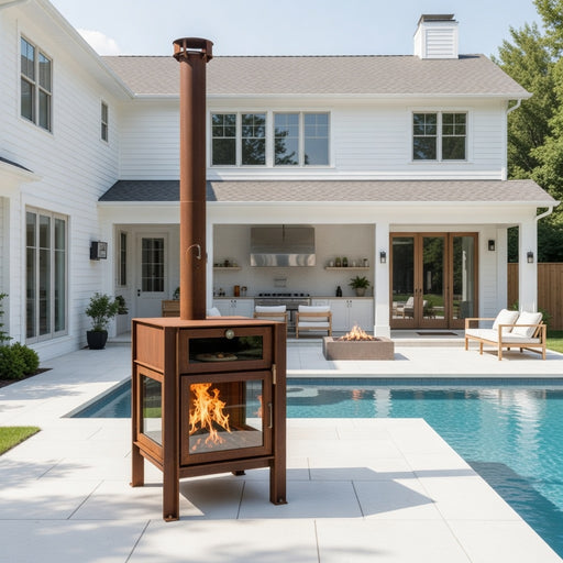View full detailsQuercus 3-sided Glass CorTen Steel Wood-Burning Fireplace and Oven | RB73