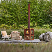 - The QUARUBA is an outdoor fireplace and is available in three different models: L, XL and XXL. Model L is the smallest of this series and is 85 centimeters high. The frame is made of CorTen steel and gives the stove the industrial look that comes into its own on every terrace.