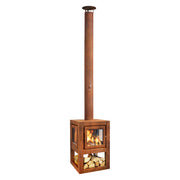 Quaruba MOBILE 4-Sided Glass CorTen Steel Wood-Burning Outdoor Fireplace | RB73