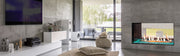Relish in Plazas grand edge to edge viewing area in not only one room but two. Set the ambiance in both rooms by selecting your desired flame height and LED under lighting with the simple to use remote controls. Finish your fireplace with a variety of log and media options that are sure to accentuate any décor. Plaza fireplaces are engineered with unlimited design and installation capabilities for every room. With the innovative heat redistribution system finishing materials can be brought up to the fireplace opening. This also allows for a TV artwork or mantel to be safely installed above the fireplace. Unobstructed views above the fireplace are made possible by its unique venting configuration. The Plaza also utilizes power vent technology which means greater vent run lengths and the ability to vent down below the fireplace.